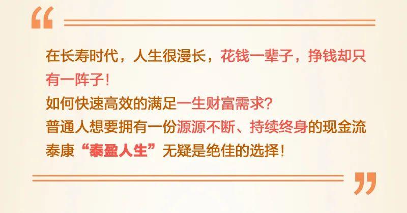 泰盈人生計(jì)劃的核心保障源于其主力產(chǎn)品設(shè)計(jì)——《泰康泰盈人生A款/ B款年金保險(xiǎn)(分紅型)》(簡(jiǎn)稱泰盈人生)將生存金、養(yǎng)老金等核心權(quán)益明確寫入保險(xiǎn)合同,確?!敖K身”不間斷給付,為客戶打造與生命等長(zhǎng)的現(xiàn)金流安全網(wǎng)。