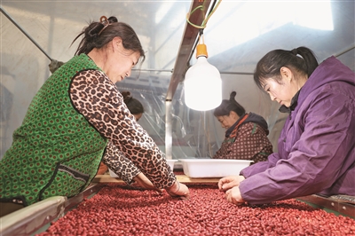 “以前收花生比較零散,現金不夠就給農戶打欠條。”聶建英抓起一把花生搓了搓,果殼在掌心發出清脆的碰撞聲,“現在貸款秒到賬,我敢和農戶簽保底價,收購量逐年上升。”車間墻上貼著“當日收購,當日結款”的標語,隔壁庫房里,十多名工人正將花生裝箱發往全國。夜幕降臨時,聶建英的手機仍在閃爍——那是農戶發來的花生照片,屏幕的光映著她眼角的笑紋:“現在一個電話能調百噸貨,咱也成了產業鏈上的‘關鍵齒輪’。”
