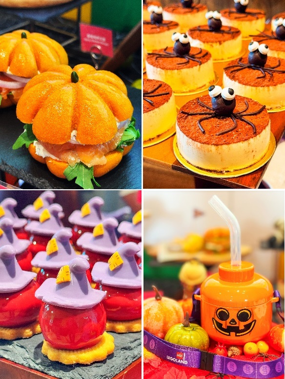 主題活動期間,樂園的主題餐飲也全面“變裝”,多種特色美味已經就位,等你來打卡品嘗。在積木大街咖啡廳,不給積木就搗蛋甜甜圈以及樂高樂園?DIY角色餅干限時上新,饑餓大嘴龍廚的漢堡變身南瓜造型,讓美食也充滿節日的氛圍。城市餐廳為游客準備了小幽靈披薩,積木街道咖啡館則呈現各式蜘蛛和蜘蛛網造型的甜點,把舌尖上的搞怪氛圍拉滿。騎士餐廳不僅準備了主題家庭套餐,還有小怪獸盛宴派對主題自助晚餐會在10月25-26日、31號以及11月1-2日限時供應,玩了一整天的大小游客們可以一起大快朵頤,給疲憊的腸胃“充個電”。另外,各個主題區還有多款限定特飲驚喜上線,更有南瓜頭角色紀念杯等你帶回家。