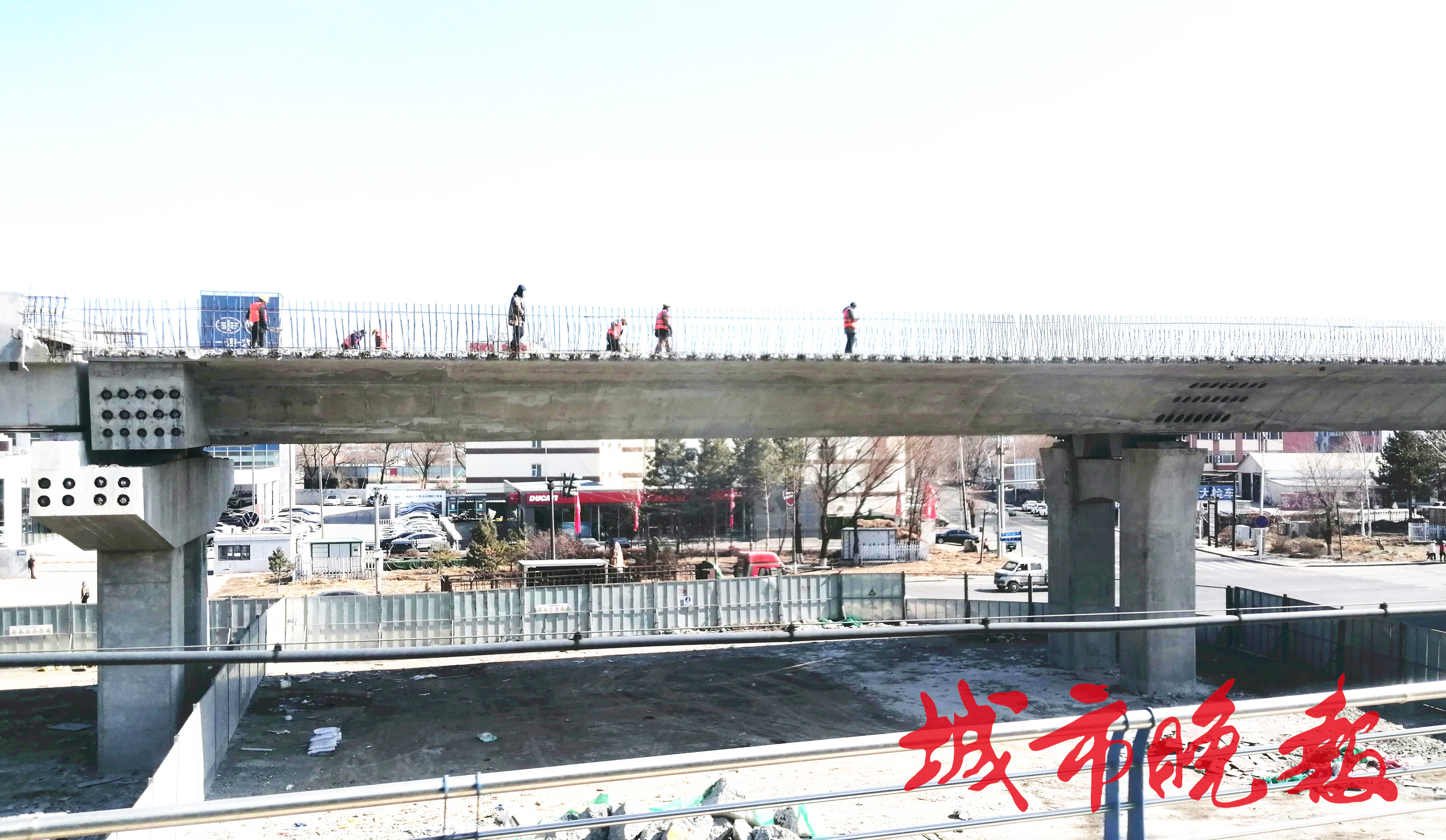 3月19日上午,城市晚報全媒體記者在項目施工現場看到,施工人員正在進行預制梁架設及現澆梁支架施工,一派繁忙景象。