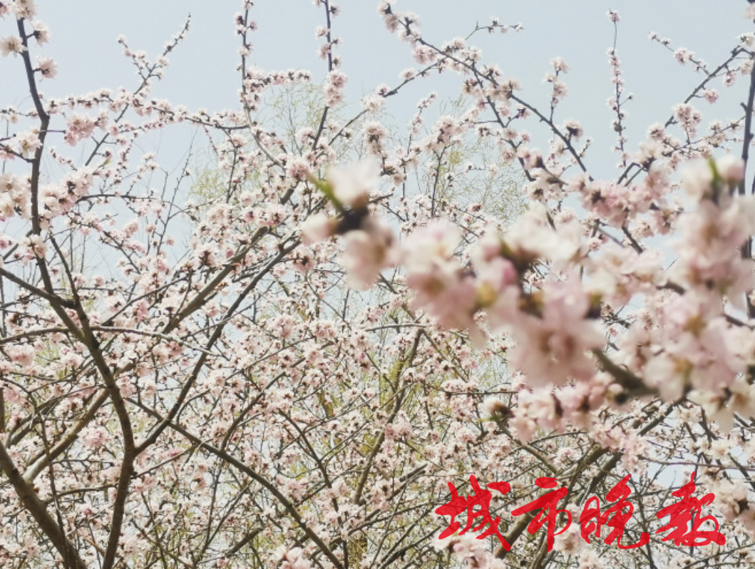 連翹花旁邊,桃花、杏花也相繼開放,粉色、白色的花瓣一團團、一簇簇地掛滿枝頭,花繁姿嬌,占盡春色。微風吹過,一陣陣香氣更是撲鼻而來,漫散整個岸邊,令人心情愉悅。岸上,還有一些杏花正含苞待放,它們早已迫不及待,想與其它“小伙伴們”爭春鬧春!